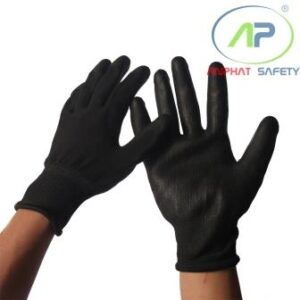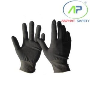 Găng tay thun đen phủ PU lòng Đen size L ( Không viền)
