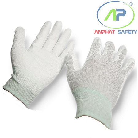 Găng tay thun Phủ PU ngón tay Màu trắng