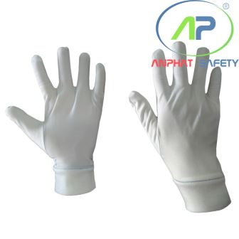 Găng tay thun Phủ PU ngón tay Màu trắng